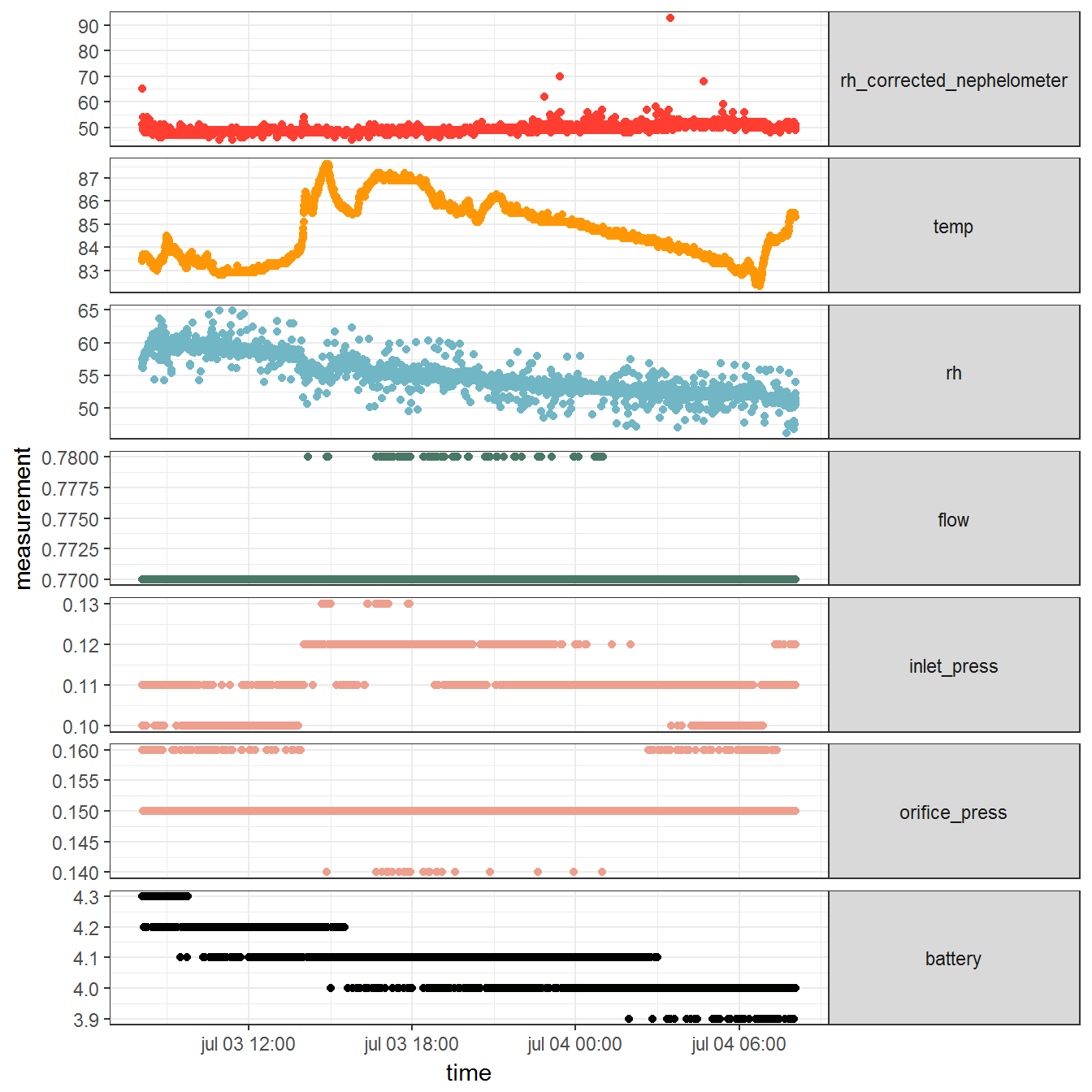 Second, since the RTI MicroPEMs are nice devices but also a work-in-progress, we had some problems with the data, such as negative relative humidity. Because of these issues, we decided to write an R package whose three goals were to: