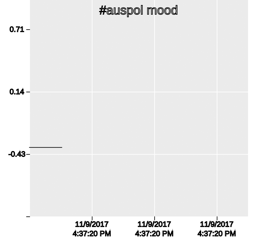 Fast forward to the unconf and a decent number of people gathered around a little slip of paper with geom_realtime() written on it. I had to admit to everyone that the ggplot2 aspect of my demo was a sham (it’s surprisingly easy to draw a canvas in just the right shade of grey with white gridlines), but people stayed, and we got to work seeing what else we could do with the idea. We came up with some suggestions for input sources, some different plot types we might like to support, and set about trying to understand what Sean’s package actually did.