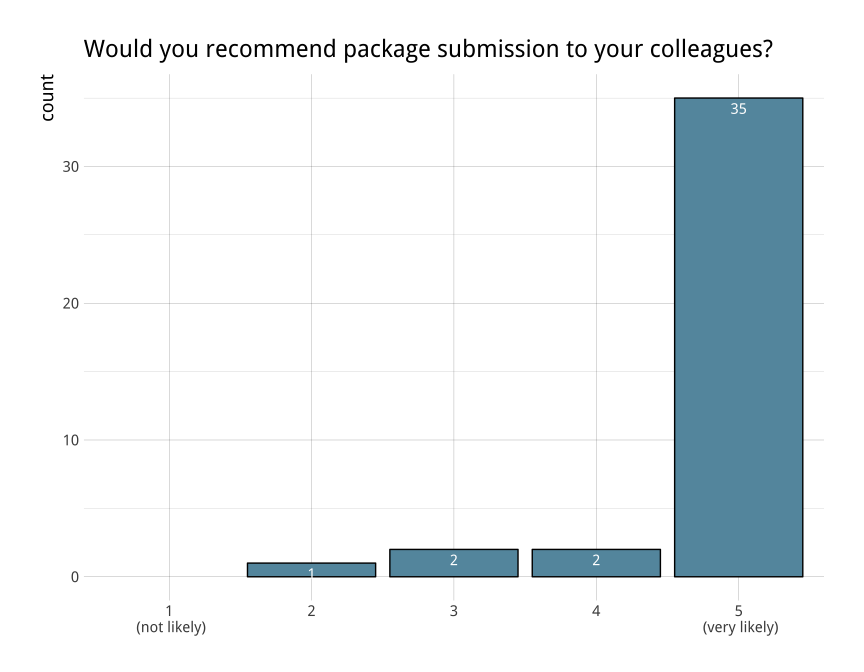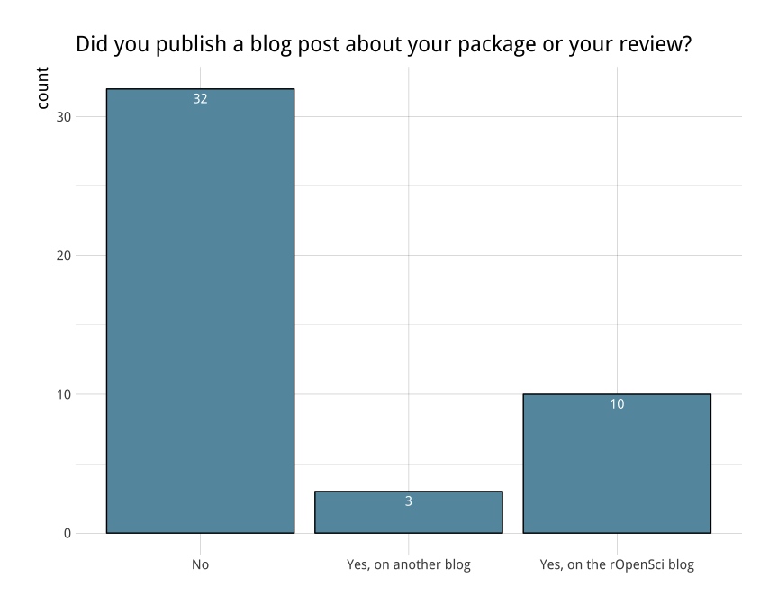 At the completion of each review, the editors invite package authors to submit either a long-form blog post aimed at a general reader, or a shorter technical note. Most authors who wrote posts reported greater visibility for their package and some also enjoyed reflecting on the development process.
