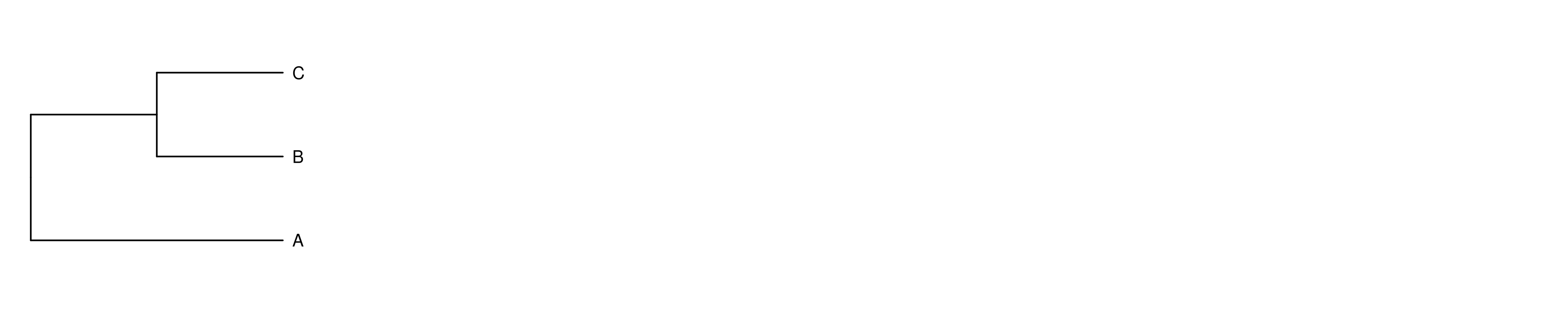 As an example, a simple three-leaf dendrogram can be created from a nested list as follows: