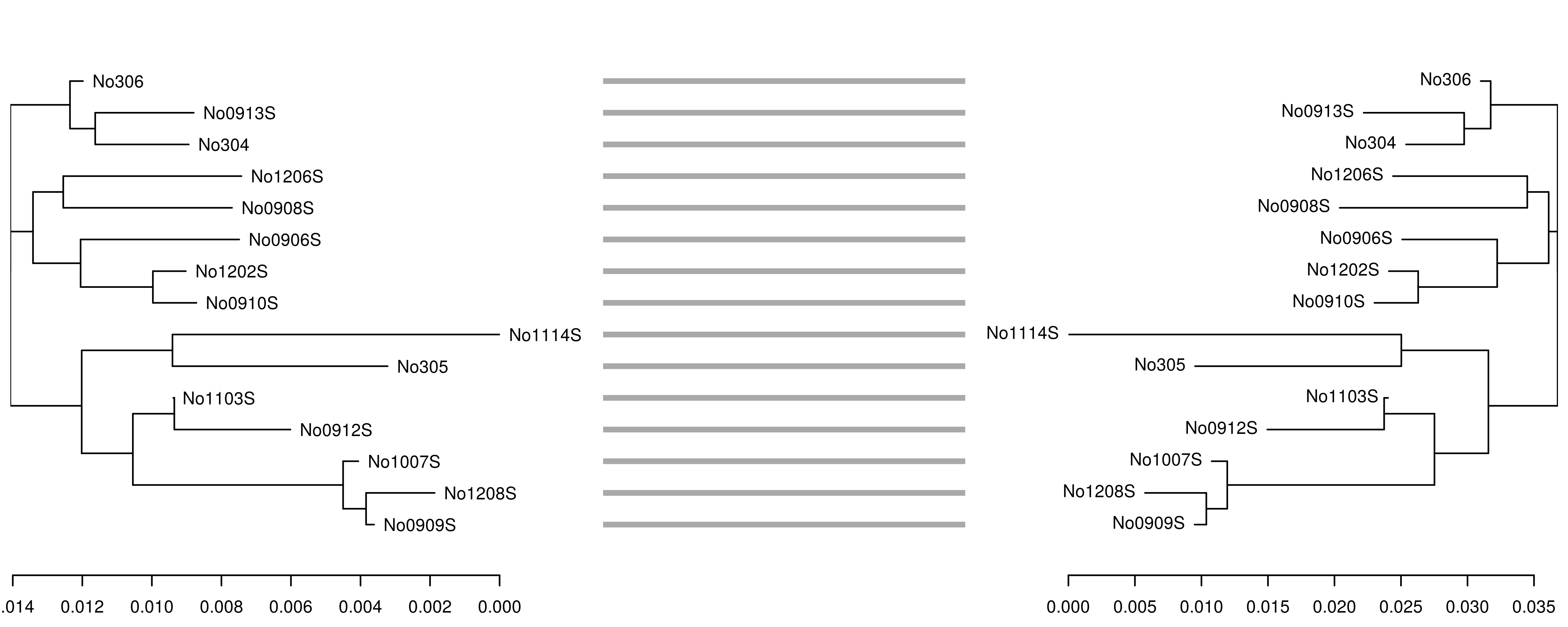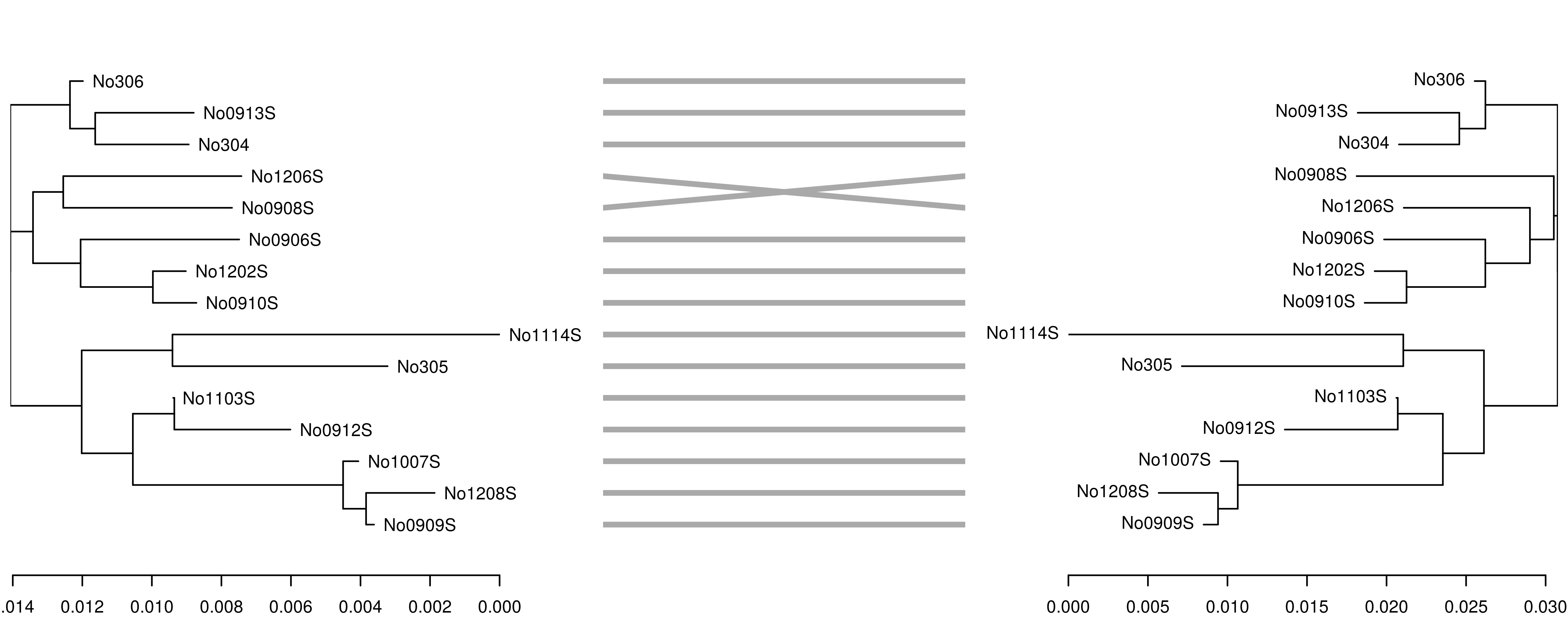 dendextend::tanglegram(dndlist, fast = TRUE, margin_inner = 5)